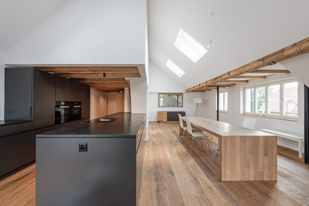 In Rupperswil durften wir für eine Familie das elterliche Bauernhaus umbauen. Aus niedrigen und kleinteiligen Räumen wurde, auch dank des Mutes der Bauherrschaft – ein grosszügiges Wohnen, dass den Bestand erkennbar lässt und das Neue gekonnt integriert. Ein Herzensprojekt!